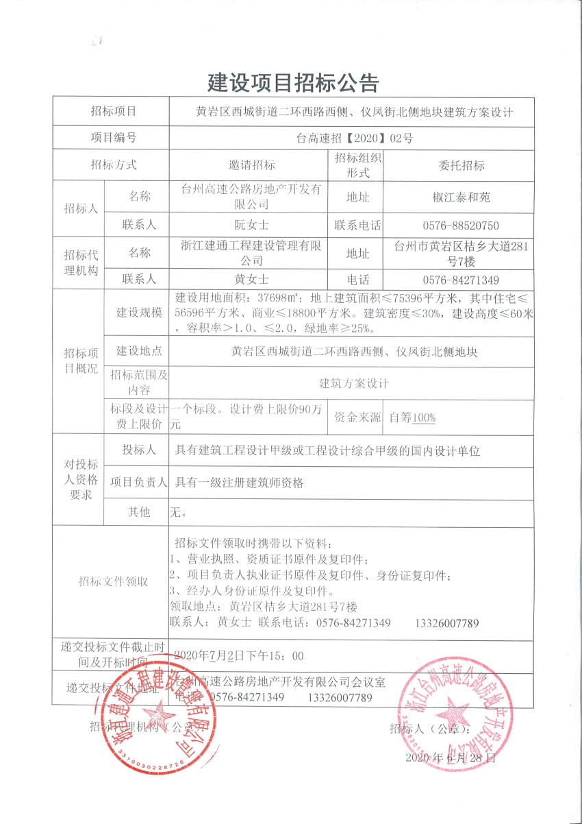 黃巖區(qū)西城街道二環(huán)西路西側(cè)、儀鳳街北側(cè)地塊建筑方案設(shè)計招標(biāo)公告