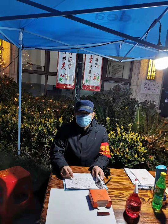 黨員包啟曉,在星洲小區(qū)援助社區(qū)逐家逐戶發(fā)放通行卡,并多次參與社區(qū)卡點(diǎn)測(cè)溫志愿服務(wù)。