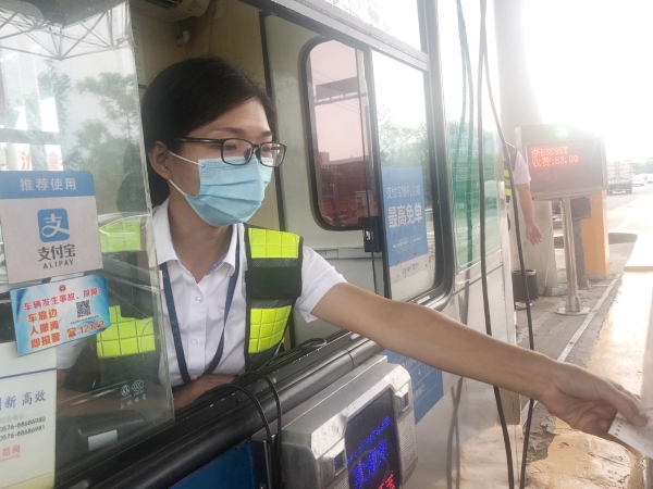 7月8日,一輛來自江蘇的小轎車由于沒帶現(xiàn)金也沒有支付寶,無法繳納通行費(fèi),司機(jī)表現(xiàn)頗為激動:“是你們沒有微信支付,又不是我不繳費(fèi),這是你們的問題!”丁小燕不卑不亢,她明白司機(jī)也需要理解,只有換位思考,將心比心,才能贏得更多的理解與尊重。于是她陪同司機(jī)一起,耐心有禮地向后面車輛的司乘解釋協(xié)調(diào),最終換得了現(xiàn)金,支付了通行費(fèi)。當(dāng)車輛啟動時,司機(jī)帶著歉意的笑容和她說了聲“謝謝,再見!”