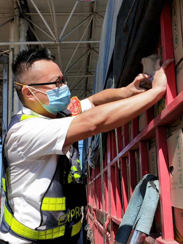 檢查綠農(nóng)車,遇到攀爬驗(yàn)貨時(shí),車輛欄桿因高溫炙烤至少在四五十度以上,臺(tái)州南收費(fèi)所班長(zhǎng)周冬子笑著說:“現(xiàn)在的車欄桿都‘辣手’了,腳底板也像踩了‘風(fēng)火輪’。” 話音還未落,只見他蹭蹭幾下,已然爬上貨車,一邊檢查貨物一邊用袖子蹭掉臉上豆大的汗珠,被曬得黝黑發(fā)紅的皮膚在烈日下格外醒目。綠農(nóng)車開走后,他顧不上滿身汗水,拿起了掃把開始打掃灑落在車道上的綠農(nóng)產(chǎn)品。因?yàn)樗?,這些灑落的農(nóng)產(chǎn)品,如不及時(shí)清理,在太陽曝曬后將會(huì)更加刺鼻,影響收費(fèi)站的形象。 熱浪滾滾,卷不走收費(fèi)員們工作的熱情;夏日炎炎,燃不盡收費(fèi)員們堅(jiān)守的意志。他們用執(zhí)著在高溫下書寫愛崗敬業(yè),用責(zé)任和擔(dān)當(dāng)保障著高速的平安暢通。 項(xiàng)丹穎