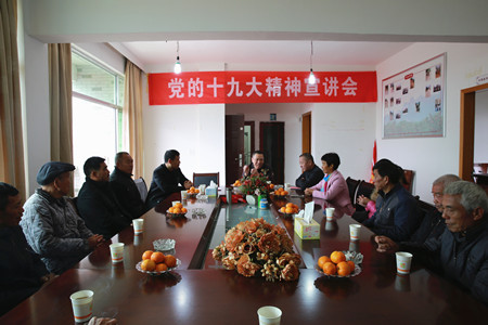 12月1日上午,公司黨委副書記、總經理張建平在監(jiān)察室負責人的陪同下,驅車拐過山路十八彎,來到黃巖區(qū)上垟鄉(xiāng)潘山頭村宣講十九大精神。