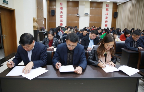 圖為測(cè)試現(xiàn)場(chǎng) 此次測(cè)試采取閉卷形式,分黨員和非黨員試題兩卷,測(cè)試范圍包括“不忘初心、牢記使命”主題教育、十九大報(bào)告及習(xí)近平新時(shí)代中國(guó)特色社會(huì)主義思想等知識(shí)。大樓近100名員工參加測(cè)試。 此次測(cè)試既是對(duì)學(xué)習(xí)效果的檢驗(yàn)考核,又是對(duì)學(xué)習(xí)成果的鞏固提升,將進(jìn)一步激發(fā)全體員工學(xué)習(xí)的主動(dòng)性和積極性,使政治信念更加堅(jiān)定、理論知識(shí)更加充沛、工作熱情更加高漲、行動(dòng)更加積極務(wù)實(shí),真正起到了以考促學(xué)、以考促記、以考促行的目的。大家紛紛表示要以此次知識(shí)測(cè)試為東風(fēng),鼓足干勁、學(xué)以致用,勇于擔(dān)當(dāng)、忠誠(chéng)履職,在平凡的崗位上干出優(yōu)異成績(jī),努力開(kāi)創(chuàng)各項(xiàng)工作新局面。 馮曉潔