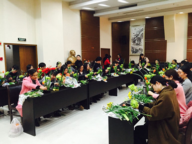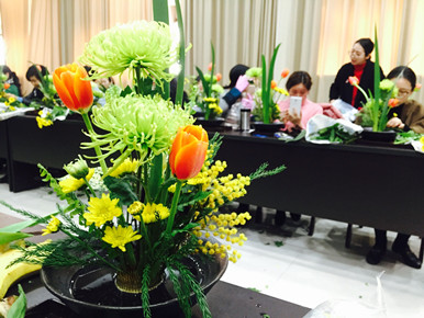 3月8日下午,公司47名女員工歡聚一堂,開展了一次具有古樸風(fēng)韻的插花活動?;顒友埩酥袊寤ɑㄋ噮f(xié)會理事、臺州市花藝文化研究會會長蘇群老師作指導(dǎo)。