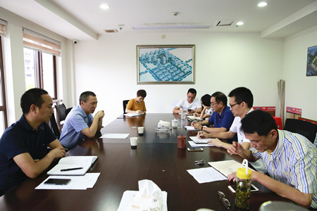 圖為集團(tuán)副董事長、總經(jīng)理張建平認(rèn)真聽取相關(guān)人員下階段工作安排匯報