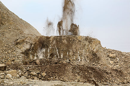 圖為炮臺山靜態(tài)爆破時(shí)場景