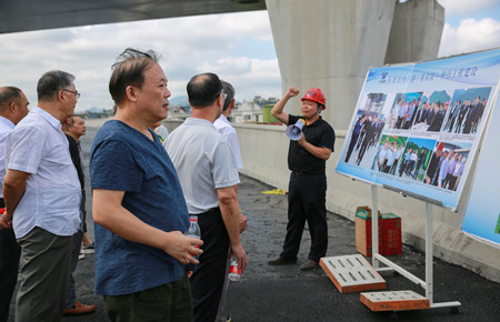 圖為在6#立交上了解工程建設(shè)情況 老干部一行實(shí)地踏勘了內(nèi)環(huán)路(黃巖段)各施工現(xiàn)場(chǎng),全面了解了四個(gè)標(biāo)段工程當(dāng)前建設(shè)情況。一路上,老干部們一面聽取各標(biāo)段工作匯報(bào),一面用手機(jī)相機(jī)記錄現(xiàn)場(chǎng)當(dāng)前建設(shè)情況,當(dāng)知道今年11月11日內(nèi)環(huán)路將實(shí)現(xiàn)主線通車時(shí),老干部們紛紛豎起大拇指,為內(nèi)環(huán)路建設(shè)的進(jìn)度和質(zhì)量點(diǎn)贊,同時(shí)表示將多走多看,為內(nèi)環(huán)建設(shè)盡自己的一份力。 鐘彪對(duì)老干部們的關(guān)心和支持表示衷心感謝,并希望各位老干部多指導(dǎo)、多監(jiān)督、多提寶貴意見,助力臺(tái)州城市建設(shè)趕超發(fā)展。 張琛